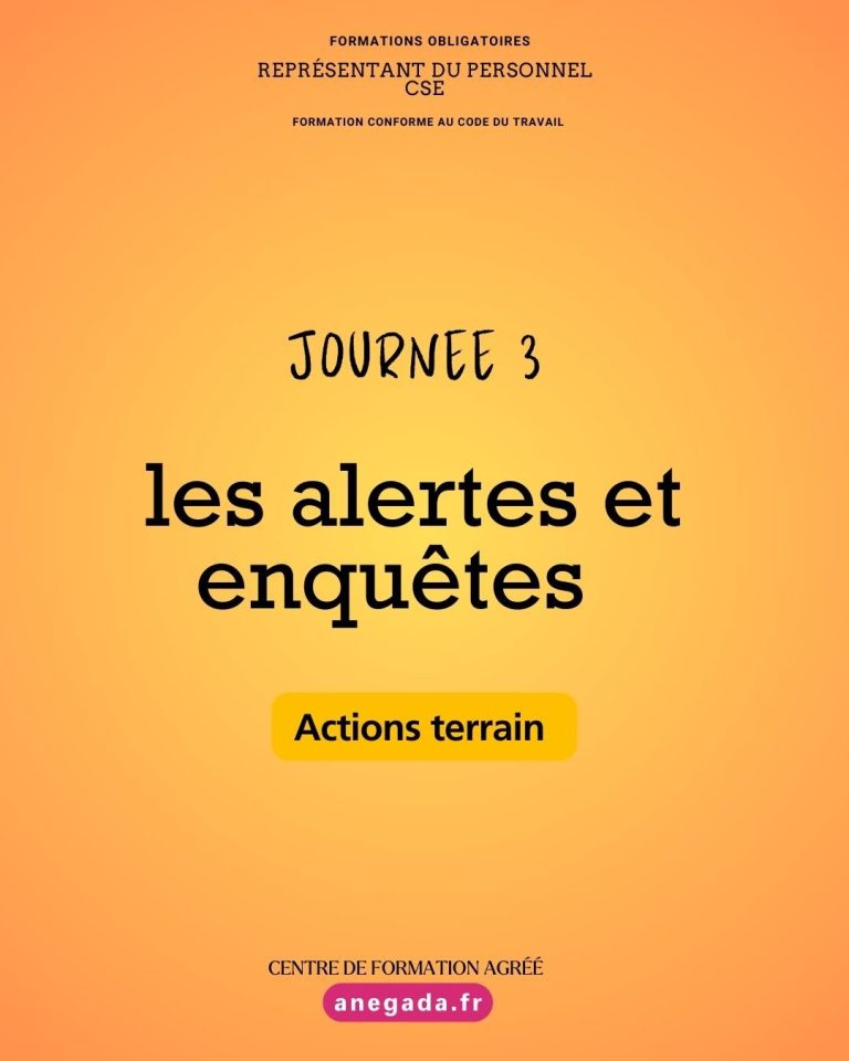Repartir avec des méthodes applicables immédiatement, savoir réagir face à un accident, un signal faible ou une situation sensible, et maîtriser la démarche d’alerte et d’enquête du CSE.