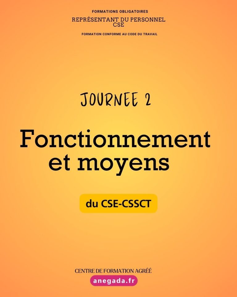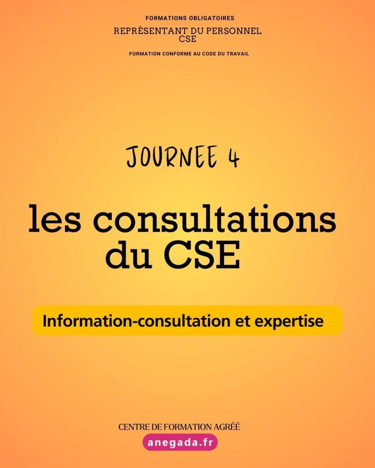 Au cours de cette première journée, les participants approfondissent le rôle du CSE en matière de prévention des risques professionnels, ainsi que la place du CSE central lorsque l’entreprise comporte plusieurs établissements. La formation détaille ensuite les règles d’information et de consultation du CSE : les thèmes obligatoires, les procédures applicables, les délais à respecter et l’articulation entre le CSE, le CSE central et la CSSCT.